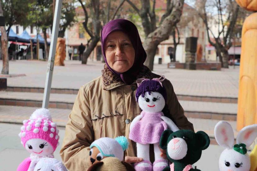 Eskişehir’de yaklaşık 5 yıldır örgü bebek yapan 58 yaşındaki kadın, Tarihi Odunpazarı Evleri bölgesinde satış yaparak aile ekonomisine katkı sağlıyor.