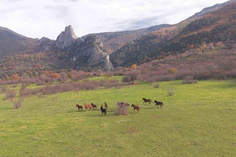 Eskişehir’deki yılkı atların özgür halleri havadan görüntülendi