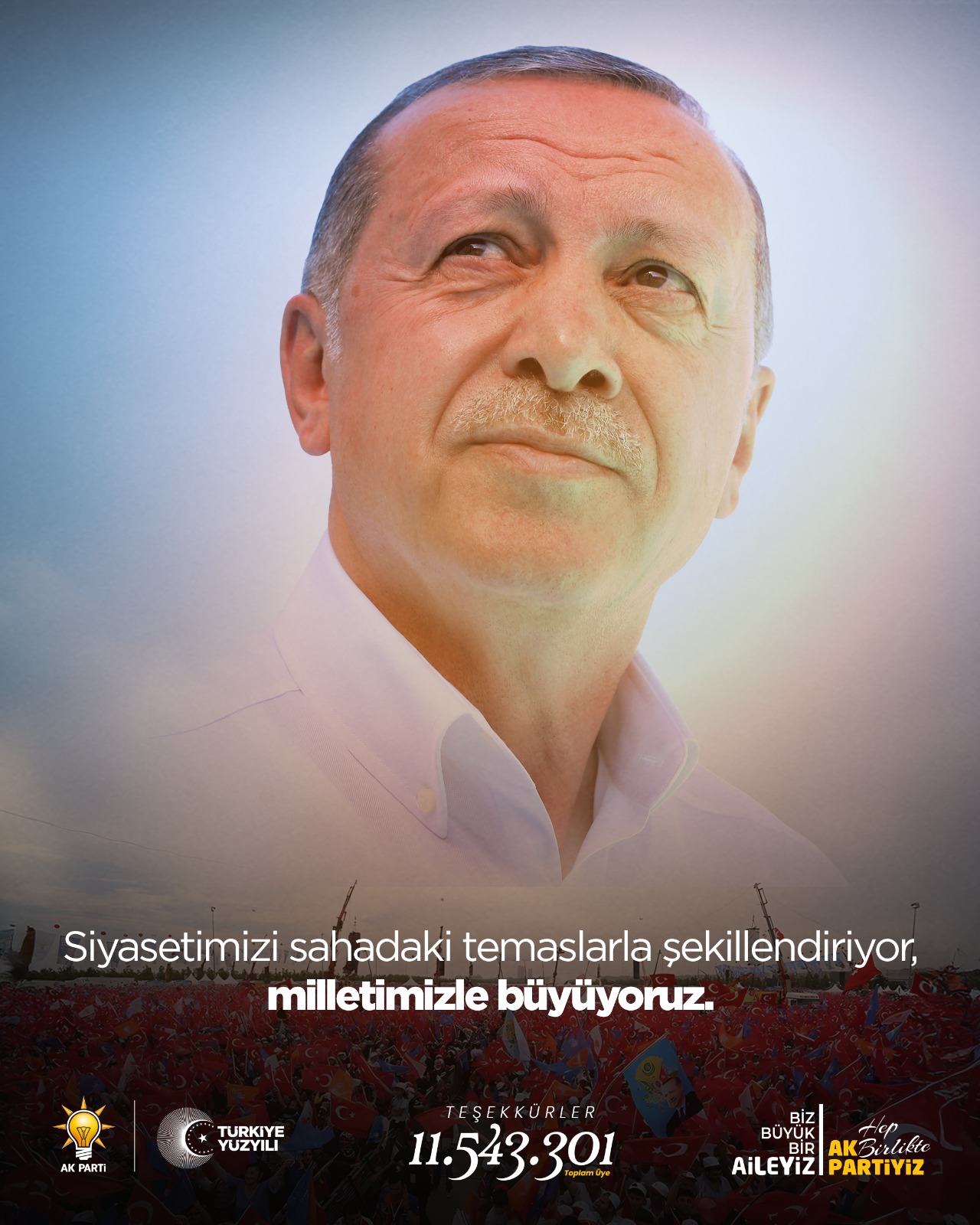 “11,5 milyonluk güçlü teşkilat yapısıyla Türkiye’nin en büyük siyasi hareketiyiz” ifadesiyle, partinin ulaştığı tarihi seviyeyi net biçimde ortaya koyarken, “Biz büyük bir aileyiz” mesajı AK Parti’nin birlik, beraberlik ve dava ruhunu vurguluyor.